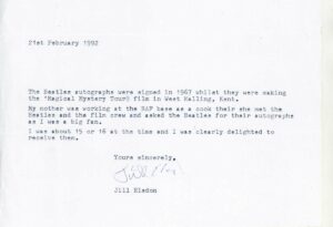 Here is a note handwritten by Paul McCartney to a female fan on an off white colored white sheet of paper, thanking her for a gift. It reads: “Dear Vicky, Thanks very much for your letter and the St. Christopher medal, it was great. Love from all the Beatles”, under which John, Paul, George and…