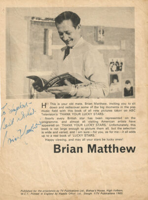 On April 14, 1963, The Beatles performed on the television show “Thank Your Lucky Stars”, which was filmed on that day and aired across the U.K. on April 20th, 1963. This early TV appearance shows Ringo’s drum head with the hand painted ‘Antenna B’ sash, which was soon to be replaced by the first ‘Drop…