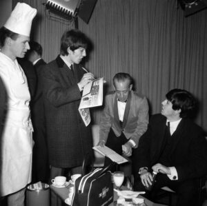 The Iconic Dezo Hoffmann ‘standing collarless suits’ pose is one of the most recognizable photographs ever taken of The Beatles… period! It’s the shot that was on the back cover of the “Meet The Beatles” album and the front and back of the U.S. “She Loves You” single — both available when The Beatles made…