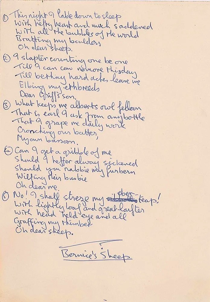 Bernice’s Sheep as written out by John Lennon reads in full: