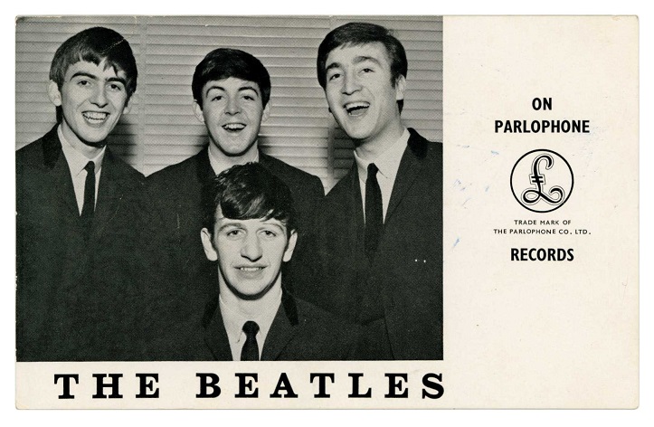 The second issue of Parlophone Records promotional photocards came out in March of 1963, featuring a shot of The Beatles taken by veteran theater photographer Angus McBean. The photo session was conducted by McBean on Monday, January 21, 1963 at EMI House 20 Manchester Square, in London, for the purpose of creating some new publicity portraits of The Beatles. The photographer took numerous shots of the band against a wall of windows, one of which was showcased on the front of the new Parlophone card.