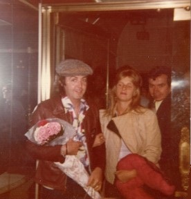 Howard got this photograph directly from the Cincinnati Enquirer in 1976 – prompted by Paul’s then current tour with Wings and the fact that he was going to be out on the road and potentially accessible to sign the photograph. And he did – on May 24th, outside of the Stanhope Hotel in New York City. Below is a photo of Paul and Linda taken at the time of signing. George signed the photo at the Ambassador Hotel in Chicago on November 15, 1976, when he was in town to promote his album “33 1/3”. Howard got John to sign on December 20, 1976 outside of The Dakota building in New York City. Below is a shot of Howard with John taken on this occasion. Ringo was the last to sign this photo, on March 24, 1981, at the Phil Donahue Show in Chicago, thus completed this extremely rare full set of post- break up autographs.