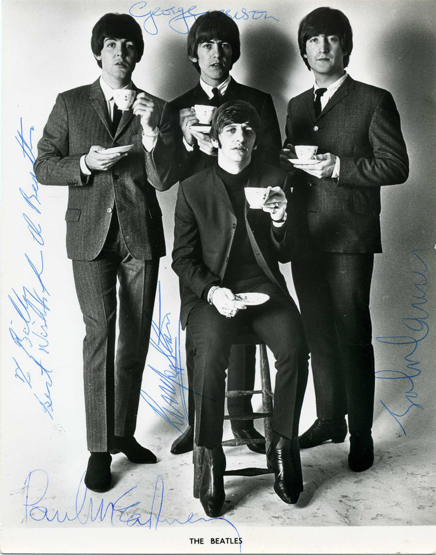 As the gathering was coming to an end, a few members of Elvis’ inner circle obtained The Beatles’ autographs on signed photos. Here is one such photo signed on that historic night – autographed for Elvis’ first cousin Billy Smith, who was quite happy to meet The Beatles. All four have signed beautifully in blue ballpoint pen, with Ringo inscribing “To Billy Best Wishes from the Beatles”. The photo, which features The Beatles holding teacups, was taken by photographer Robert Whittaker and is an outtake shot from the session that produced the “Beatles ‘65” album cover. The photograph measures 6 ½” x 8 ½” and is in near perfect condition, having been very well kept over the years. This item comes with a signed statement from Billy Smith stating that he personally obtained the autographs on that day.