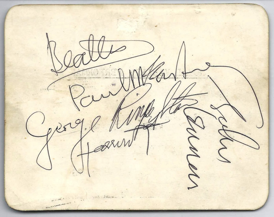 While The Beatles did sign a few items on this momentous evening, the number of autograph set that have materialized to date is very low: a few programs, a couple of artistes passes and the odd autograph book page.