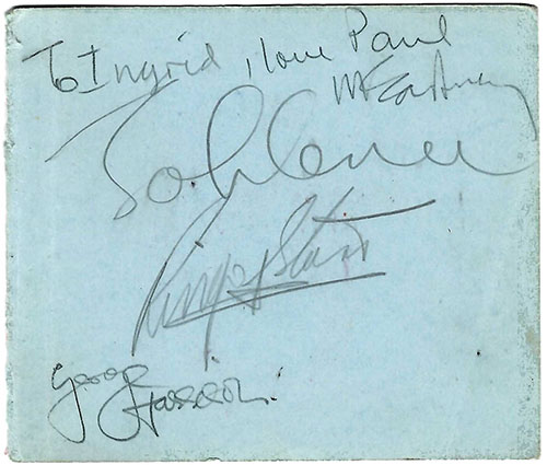 If you are a fan of the “Magical Mystery Tour” film, and in particular the two music videos (“I Am The Walrus” and “Your Mother Should Know”) shot at West Malling RAF Air Station, or the if the spectacular and colorful 1967 is your favorite ‘Beatle year’ and you want to have an ultra-rare 1967 autograph set – then this would be the perfect addition to your collection……$SOLD
