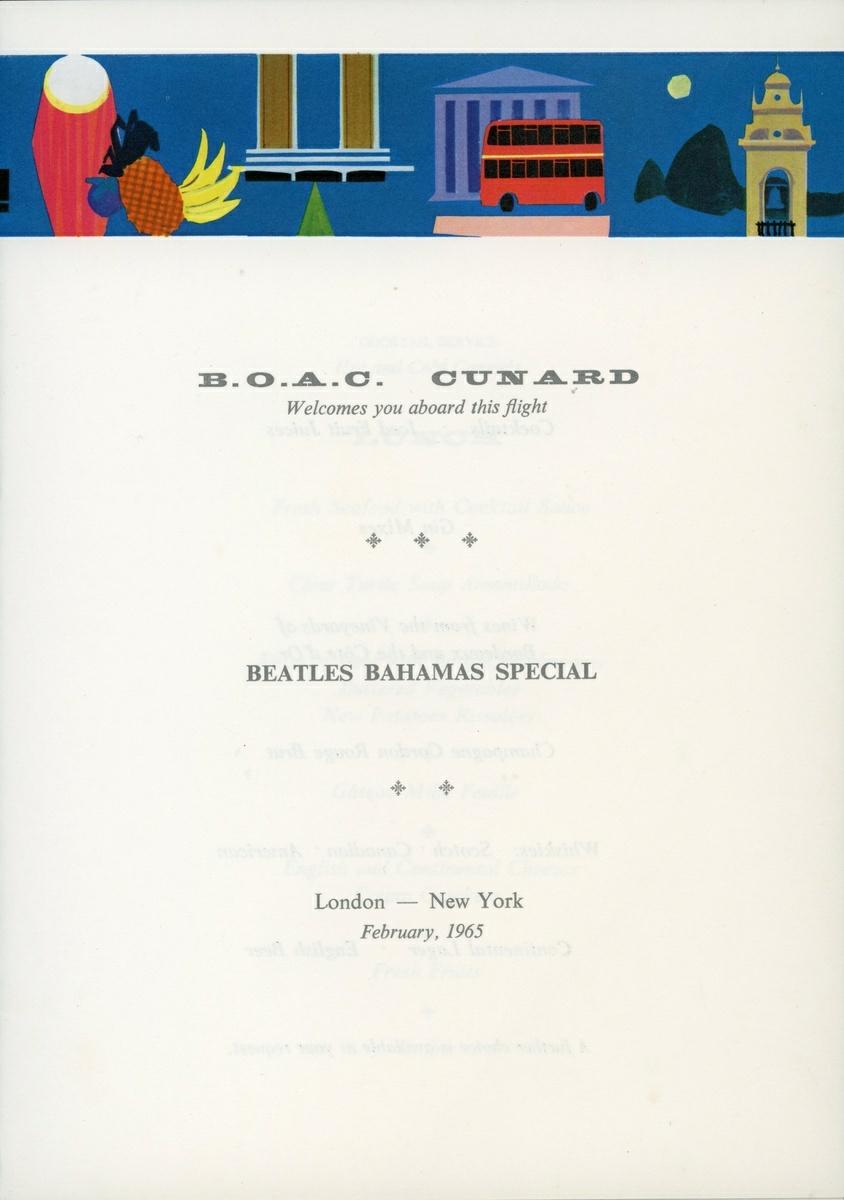 SI40. An Incredibly Rare B.O.A.C. Beatles Bahamas Special Flight Menu, Signed Beautifully By All On The Way To Film “HELP!”